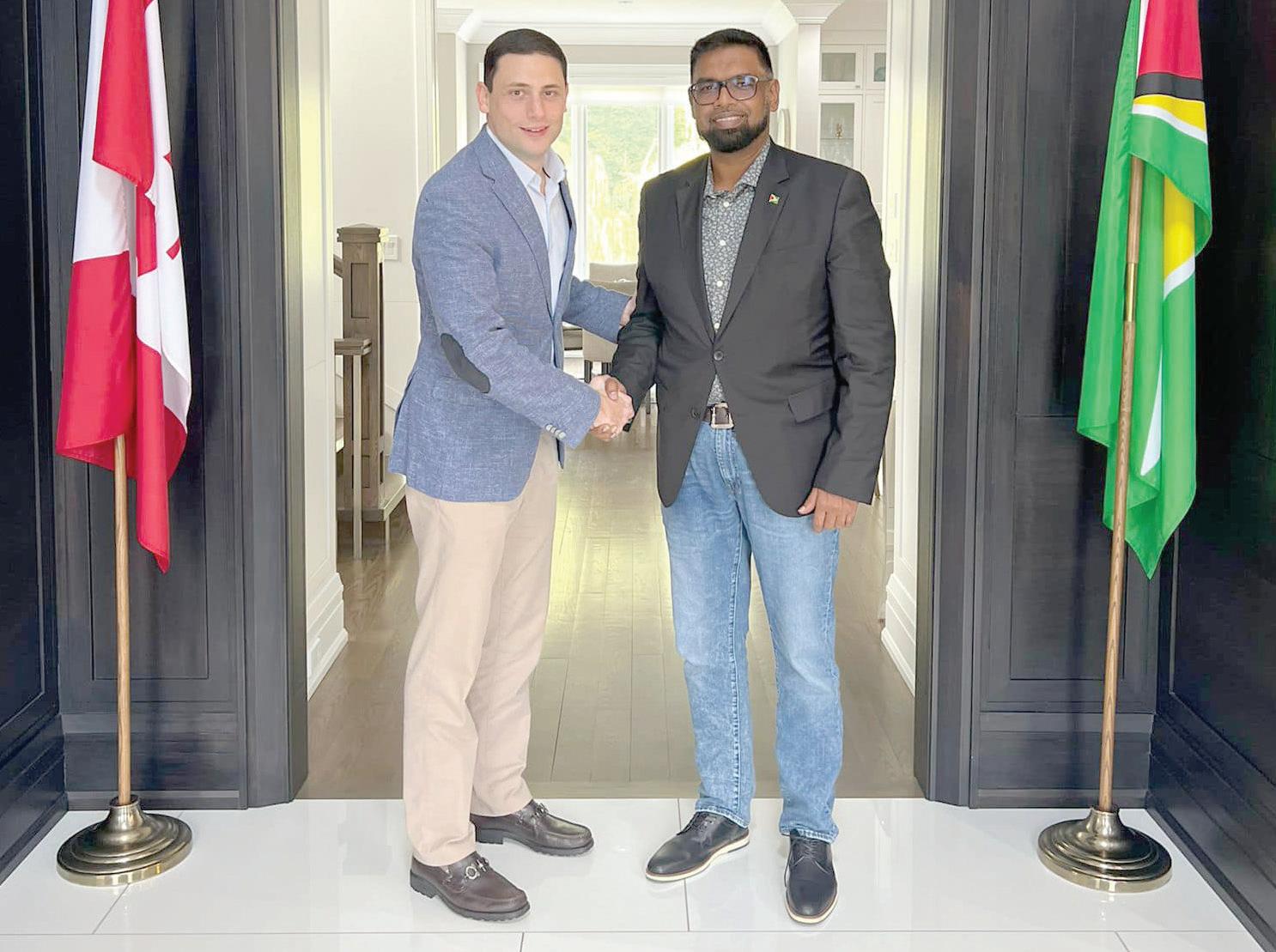 President Dr. Irfaan Ali on Saturday met with the Minister of International Development of Canada, Ahmed Hussen. Discussions focused on ongoing collaboration between Guyana and Canada, and explored new areas of cooperation (OP photo)