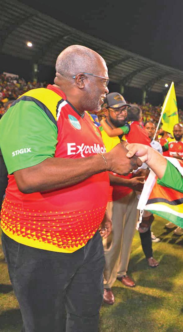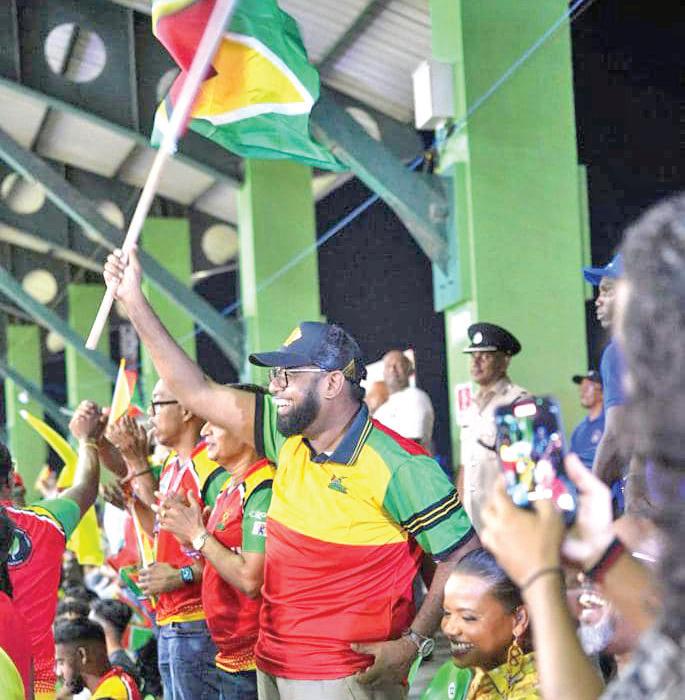 The Head of State joined thousands of Guyanese at the National Stadium, Providence, to witness the finale of the Region ’ s biggest cricket event “ Any moment that brings our country together and any moment that brings us into that celebratory as Guyanese , lifting us and
