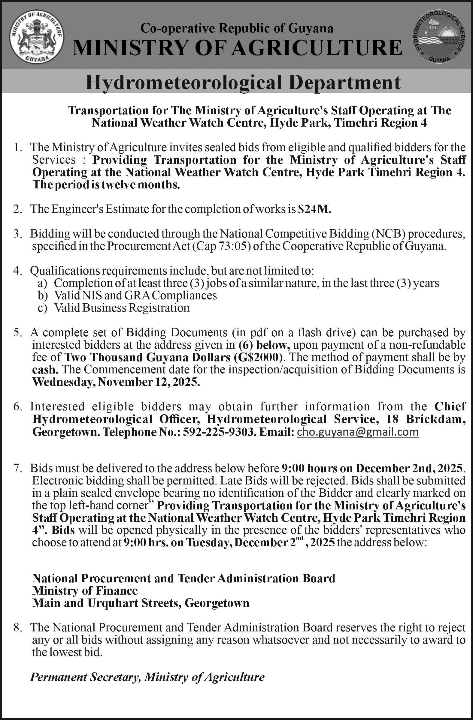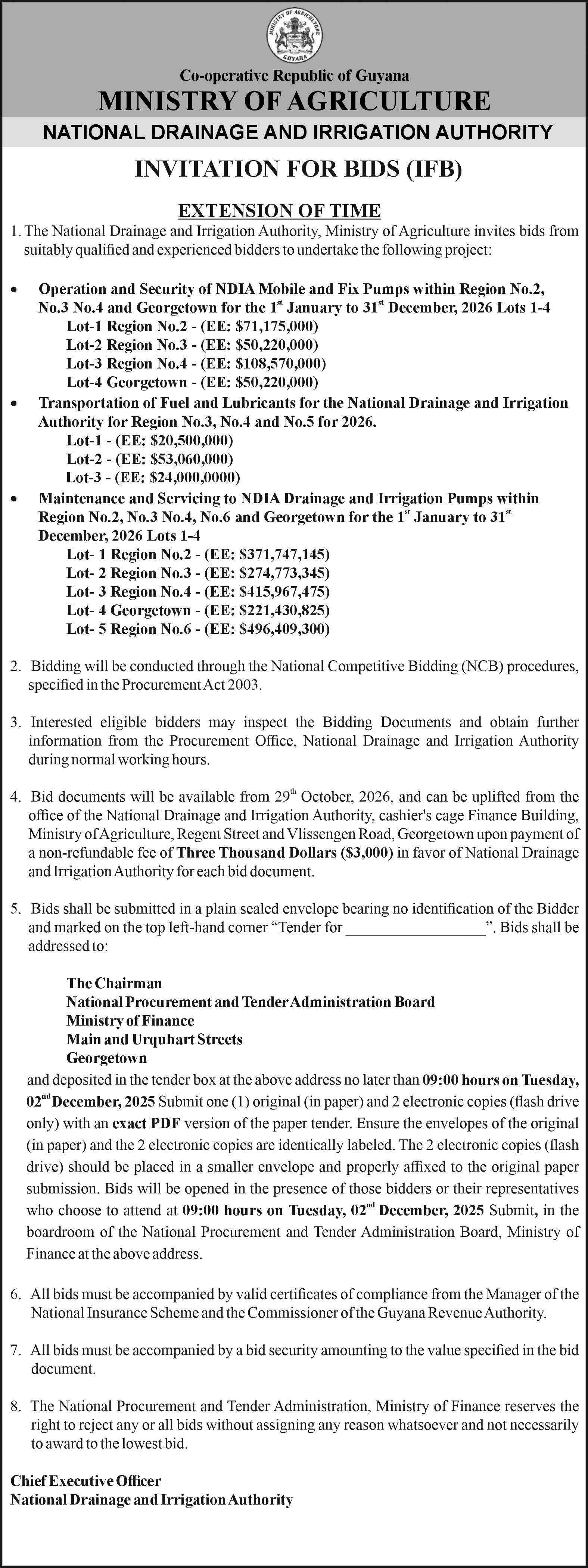 The National Agricultural Research and Extension Institute (NAREI)—Guyana’s lead agency for crop research, pest management and technical agricultural support—received $2.414 billion in current allocations and $2.205 billion in capital subventions.