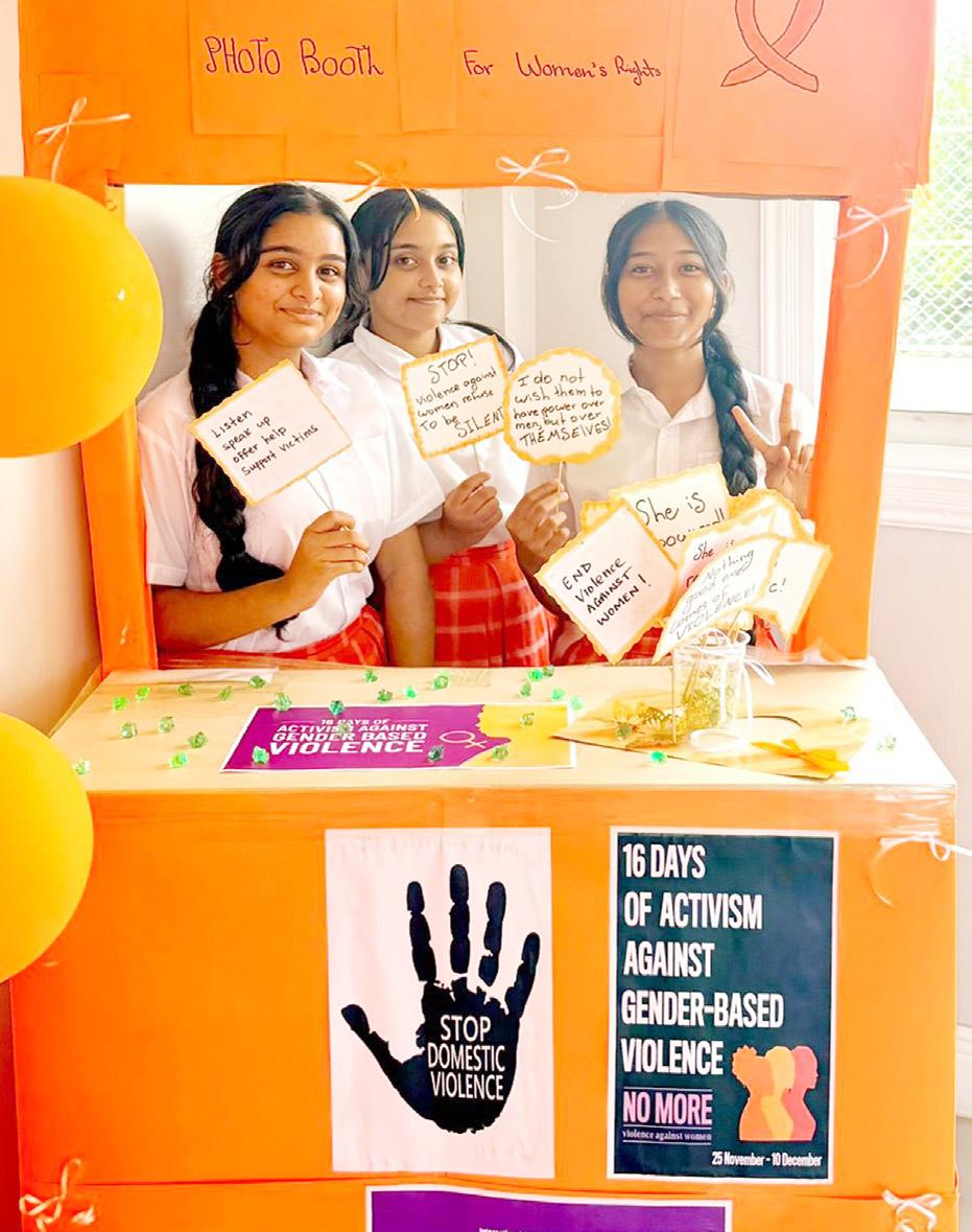 The Dharmic Rama Krishna School joined the Ministry of Human Services & Social Security in launching the national 16 Days of Activism. The students created their own inspiring orange corner, featuring a support resource station, an orange photo booth of strength, and a wall of brave voices, each filled with messages of hope and empowerment (Ministry of Human Services and Social Security)