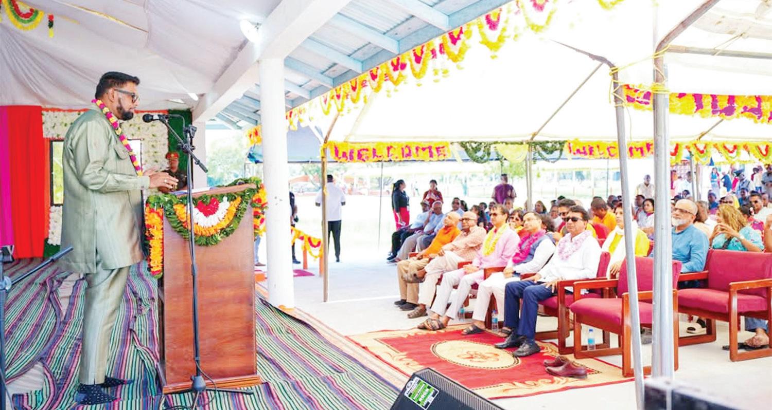 President Dr. Irfaan Ali, on Wednesday, attended the Maha Shivratri celebration at the Cove and John Ashram. In his address to the devotees, the President emphasised the importance of mutual respect as a unifying force in Guyana. He remarked that Maha Shivratri is a time for reflection and introspection regarding one’s faith and spirituality. The observance highlights the significance of understanding, compassion, and efforts toward building a harmonious society. Maha Shivratri, meaning “the Great Night of Shiva,” focuses on themes of overcoming darkness and ignorance and seeking the path of righteousness and devotion. The President also noted that following Maha Shivratri, the observances of Ramadan and Lent will commence. He highlighted that this serves as a reminder of the multicultural nature of our society, where diversity is a fundamental aspect of our identity. He encouraged everyone to use this season to practice the core lessons of their faith, emphasising love, kindness, and the pursuit of righteousness. Additionally, the President commended the ashram for its spiritual, cultural, and social contributions to society. (Office of the President)