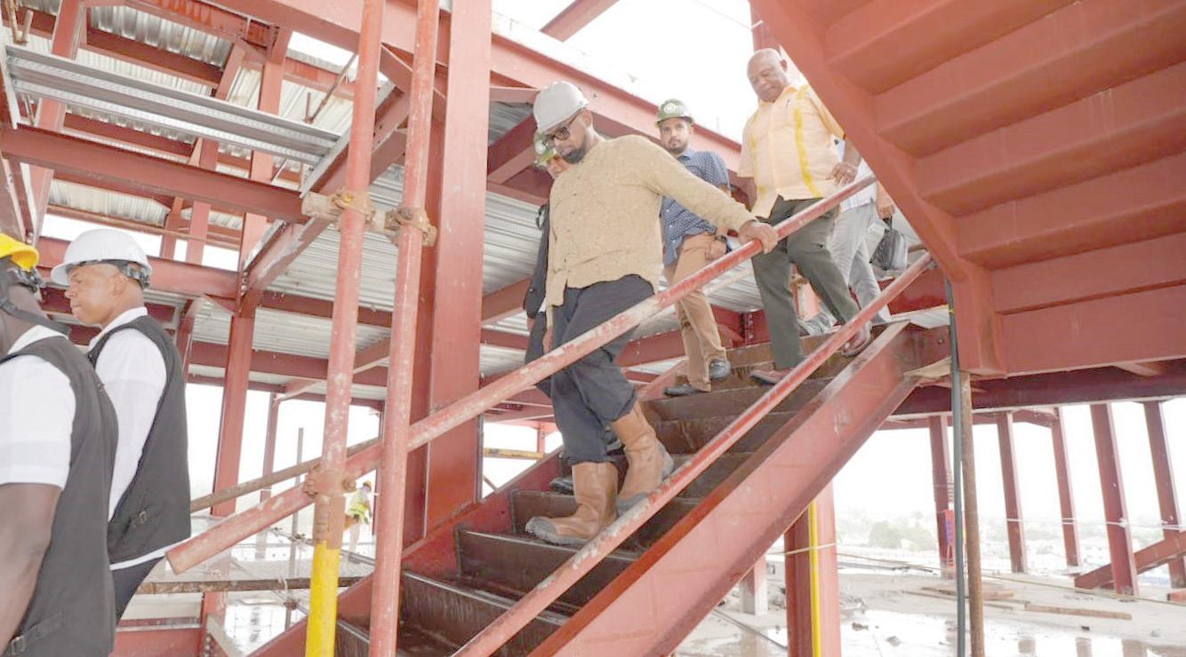 PRESIDENT, Dr Irfaan Ali on Monday visited the site of the US$15 million Aiden Hotel at Oronoque and Robb Streets, where works are ongoing, and are set to be completed by January 2024.