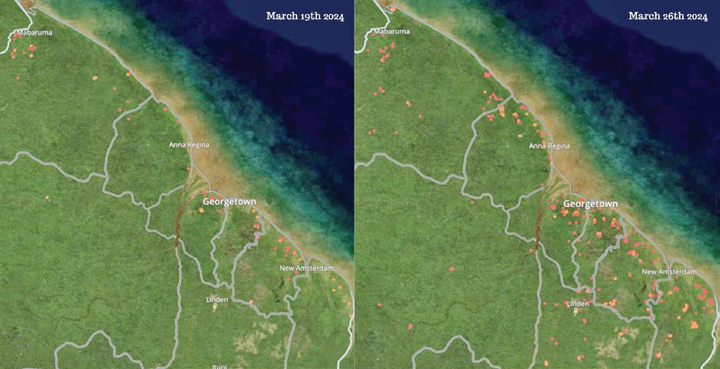 It was then said that during the period March 19-26, a heat signature comparison revealed a substantial increase in heat signatures along the low coastal plain of Guyana. The EPA then said that visibility has been and continues to be affected by smoke from active fires