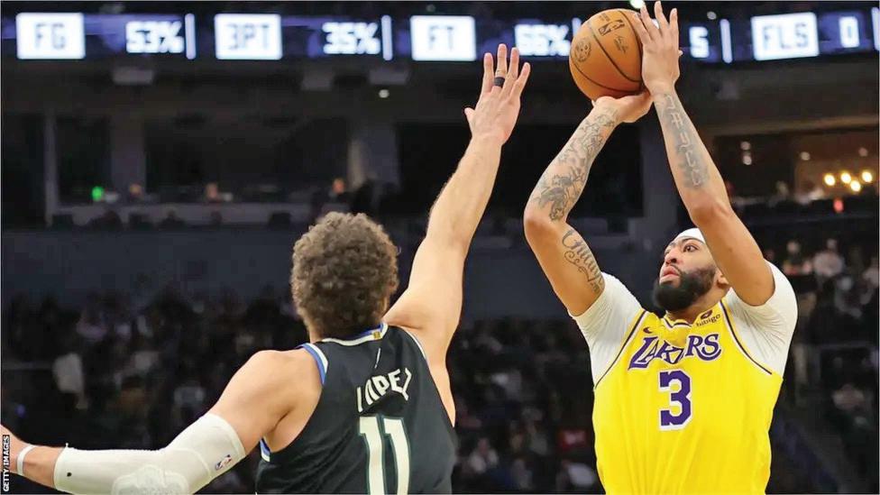 Anthony Davis hit 34 points and claimed 23 rebounds, despite struggling for mobility for much of the game, after injuring a knee in a collision with Milwaukee's Khris Middleton early on, while Reaves had 29 points, 14 rebounds and 10 assists.