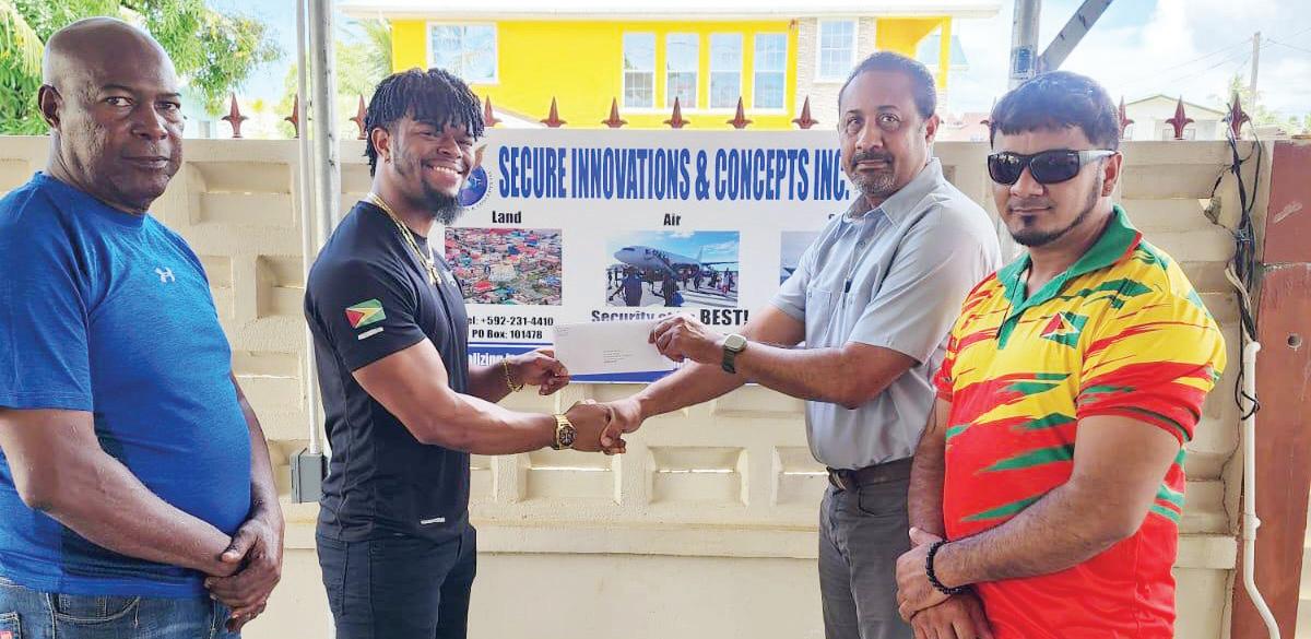 Denzel Hopkinson, Secure Innovation and Concepts Inc. Aviation Security Manager, in handing over the cheque to Fields, reminded him that the company has for many years been very supportive of the GuyanaNRA Fullbore and Smallbore shooters.