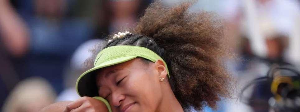 Osakacoveredherface withhertowelasshecried tearsofjoyandreliefafter thewin,andbecameemotionalagaininheron-court interview.