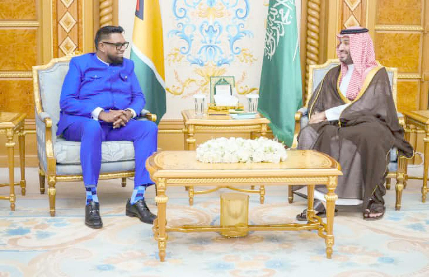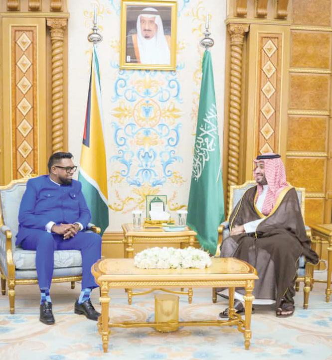 PRESIDENT Dr. Irfaan Ali met with His Royal Highness, Crown Prince Mohammed bin Salman Al Saud to discuss strengthening the partnership between Guyana and the Kingdom of Saudi Arabia across several key sectors.