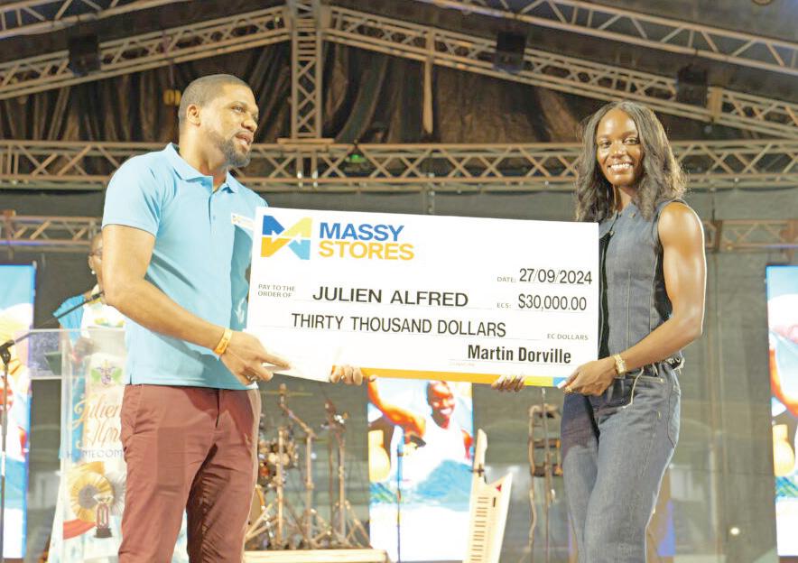 The 23-year-old fittingly received the monetary award on Julien Alfred Day, the national holiday named in her honour, after she copped gold in the women’s 100 metres and silver in the 200 metres at the Olympics, becoming the first St Lucian to medal and win gold at the prestigious event.
