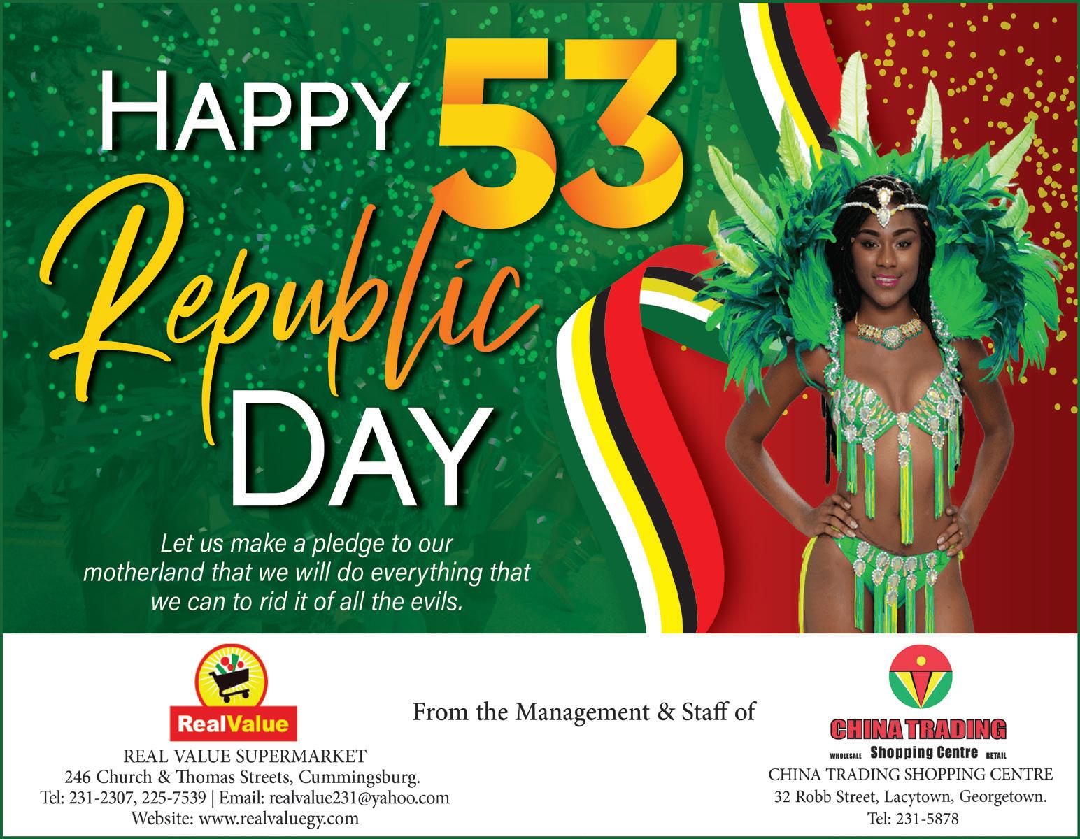 Again, Happy 53rd Republic Anniversary to all Guyanese.
