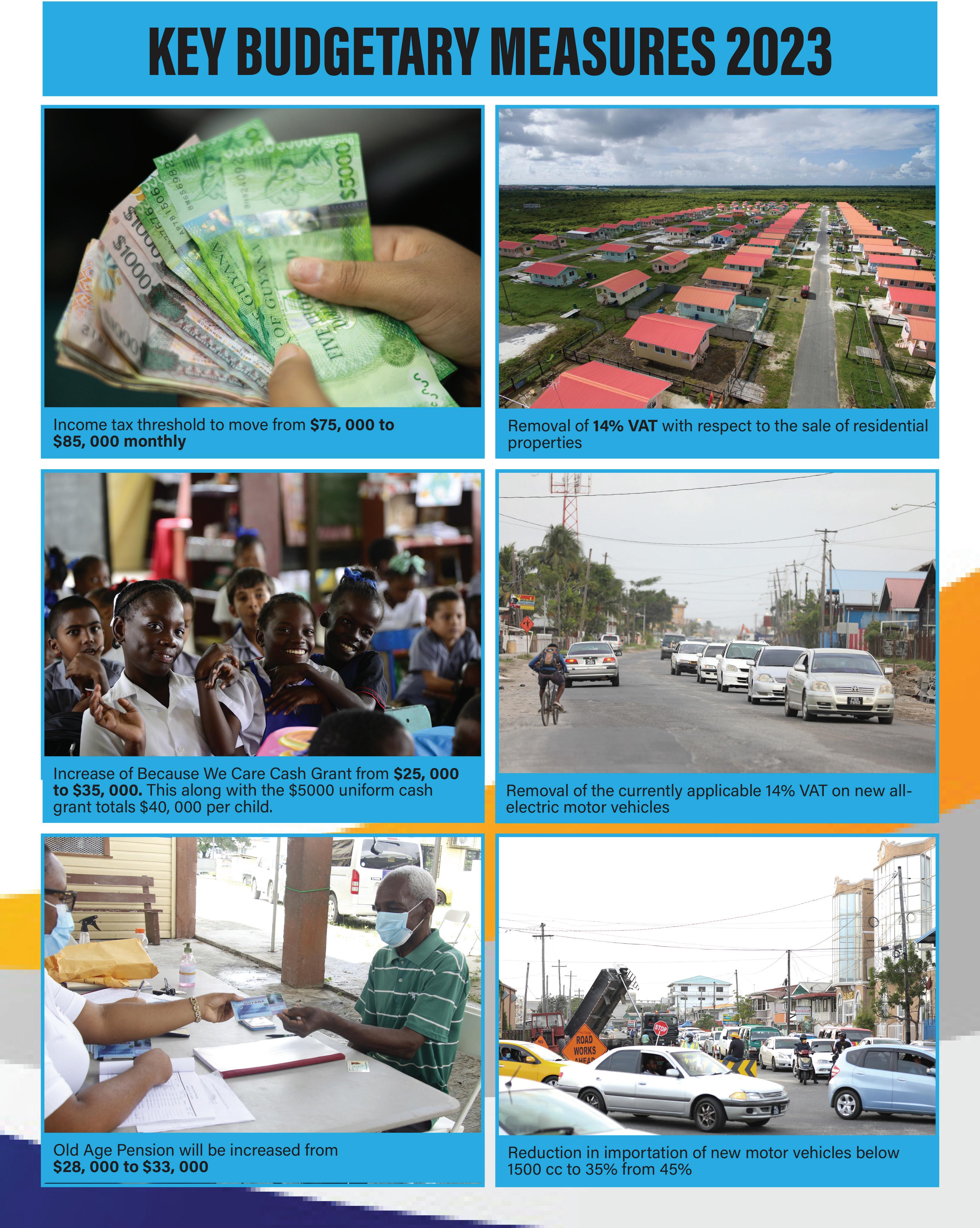 “These interventions are targeted towards continuing to increase the disposable income of our citizens, while facilitating and promoting job creation and income generation, coupled with an institutional framework that will reduce the cost of doing business all with the aim of improving the lives of all Guyanese.”