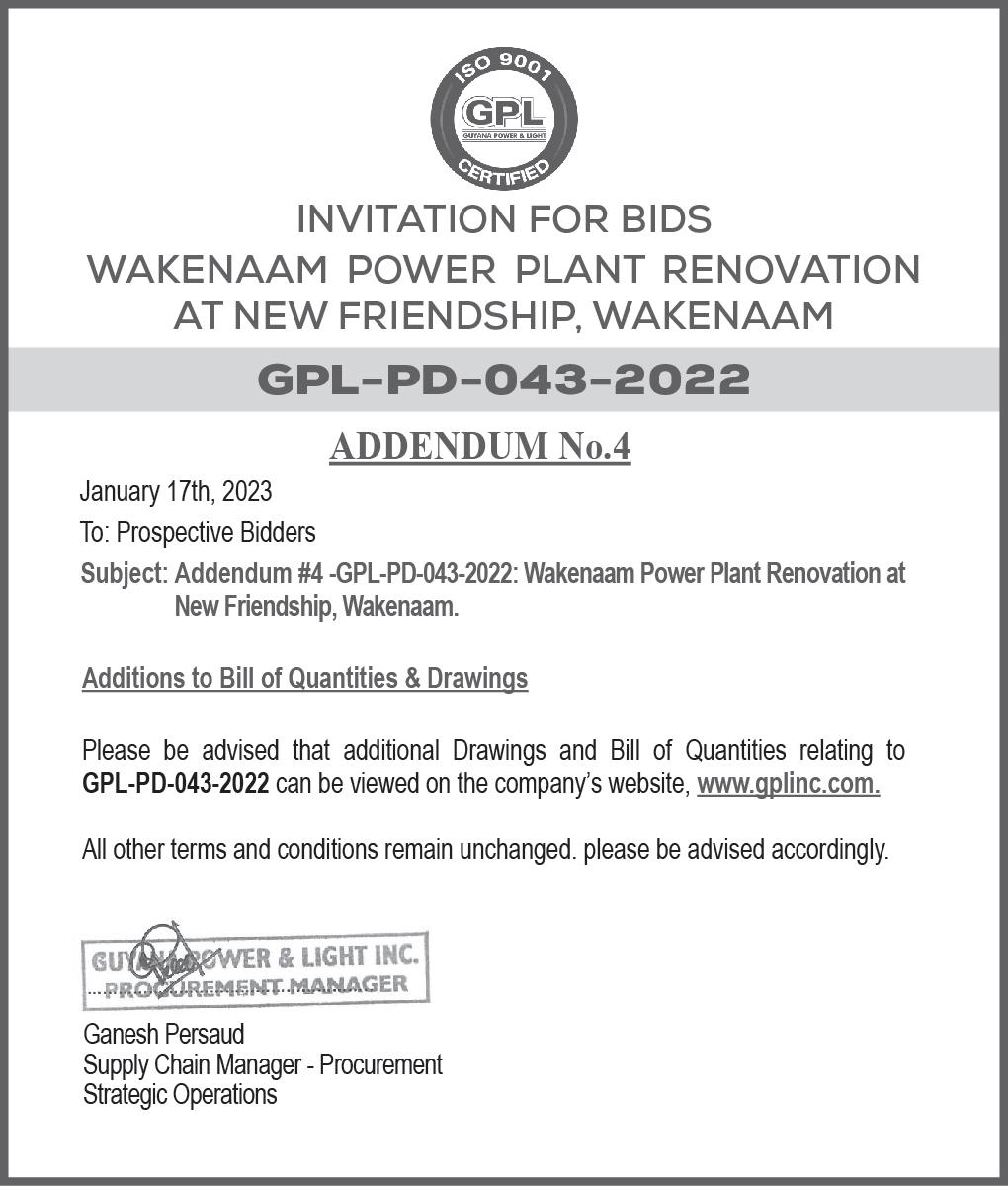 out by the Government of Guyana through the National Procurement and Tender Administration Board (NPTAB).
