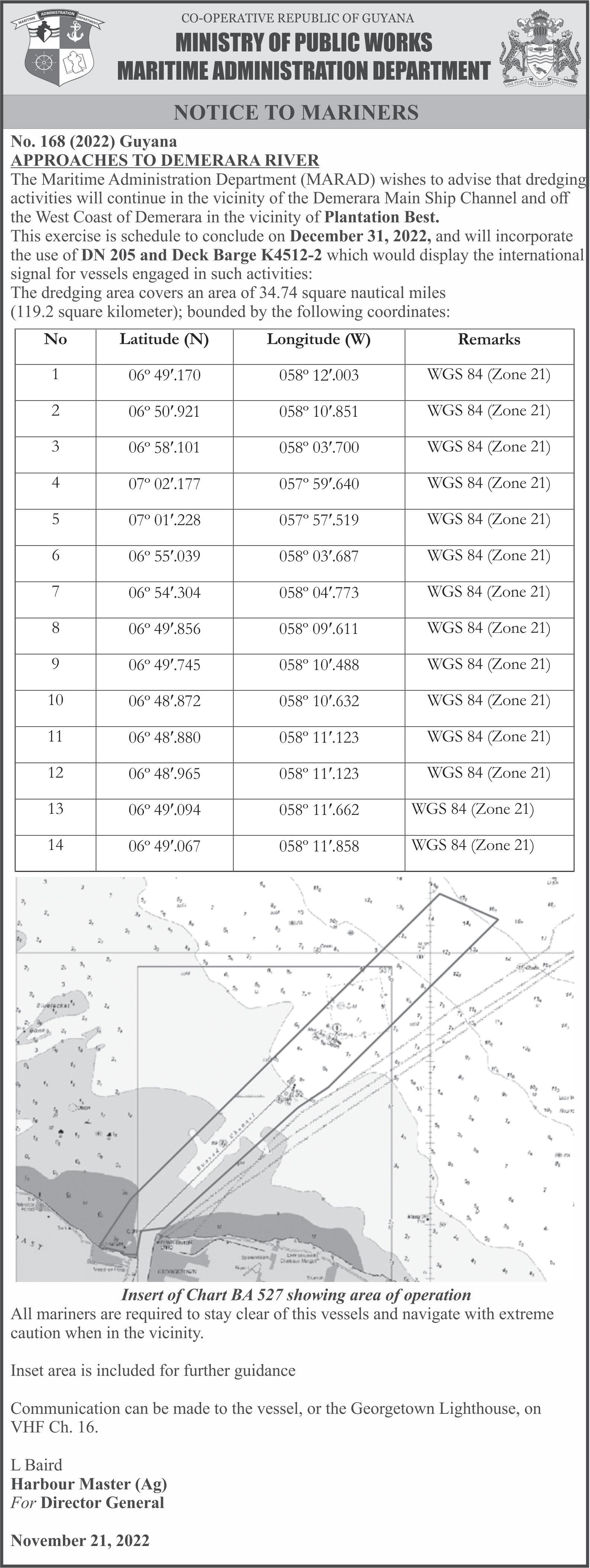 GUYANA CHRONICLE, Thursday, November 24, 2022 3