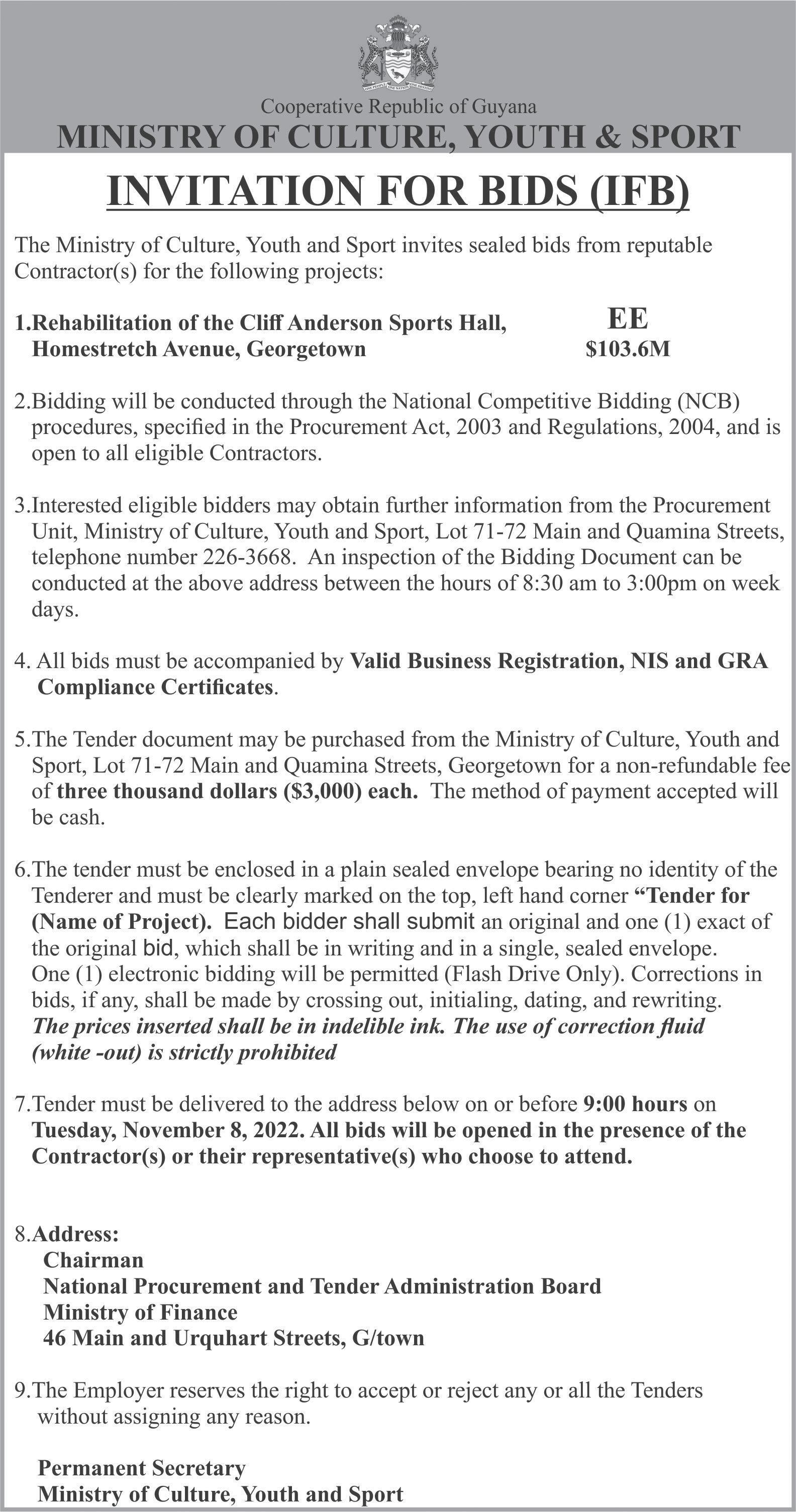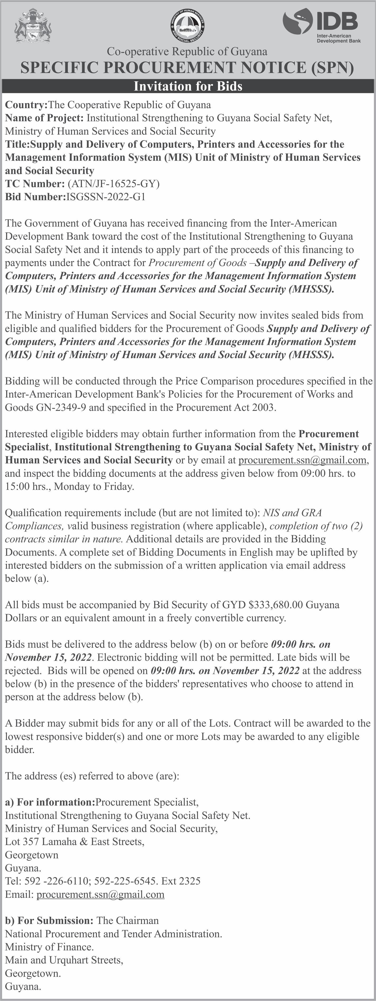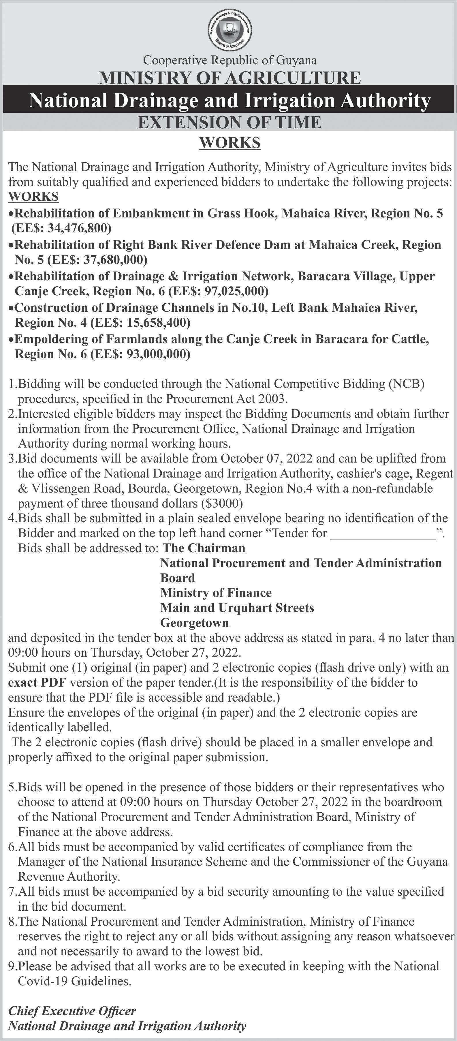 Printed and Published by Guyana National Newspapers Limited, Lama Avenue, Bel Air Park, Georgetown. Telephone 226-3243-9 (General); Editorial: 227-5204, 227-5216. Fax:227-5208 WEDNESDAY, OCTOBER 26 , 2022