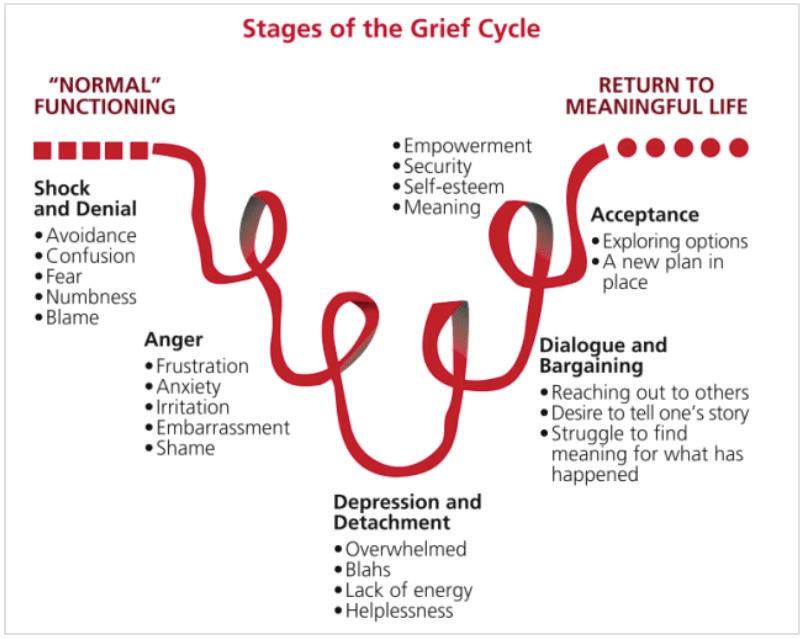 I wanted to share this personal journey to highlight the importance of growth through grief. It is possible to be okay again after a loss. It may seem impossible at first, but I want you to understand that grief is a natural response to loss, just as how happiness or joy are natural responses to great gain. In my University studies, I learned about the five stages of grief that were posited by Elizabeth Kubler- Ross. She highlighted denial, anger, bargaining, depression and acceptance as those stages.