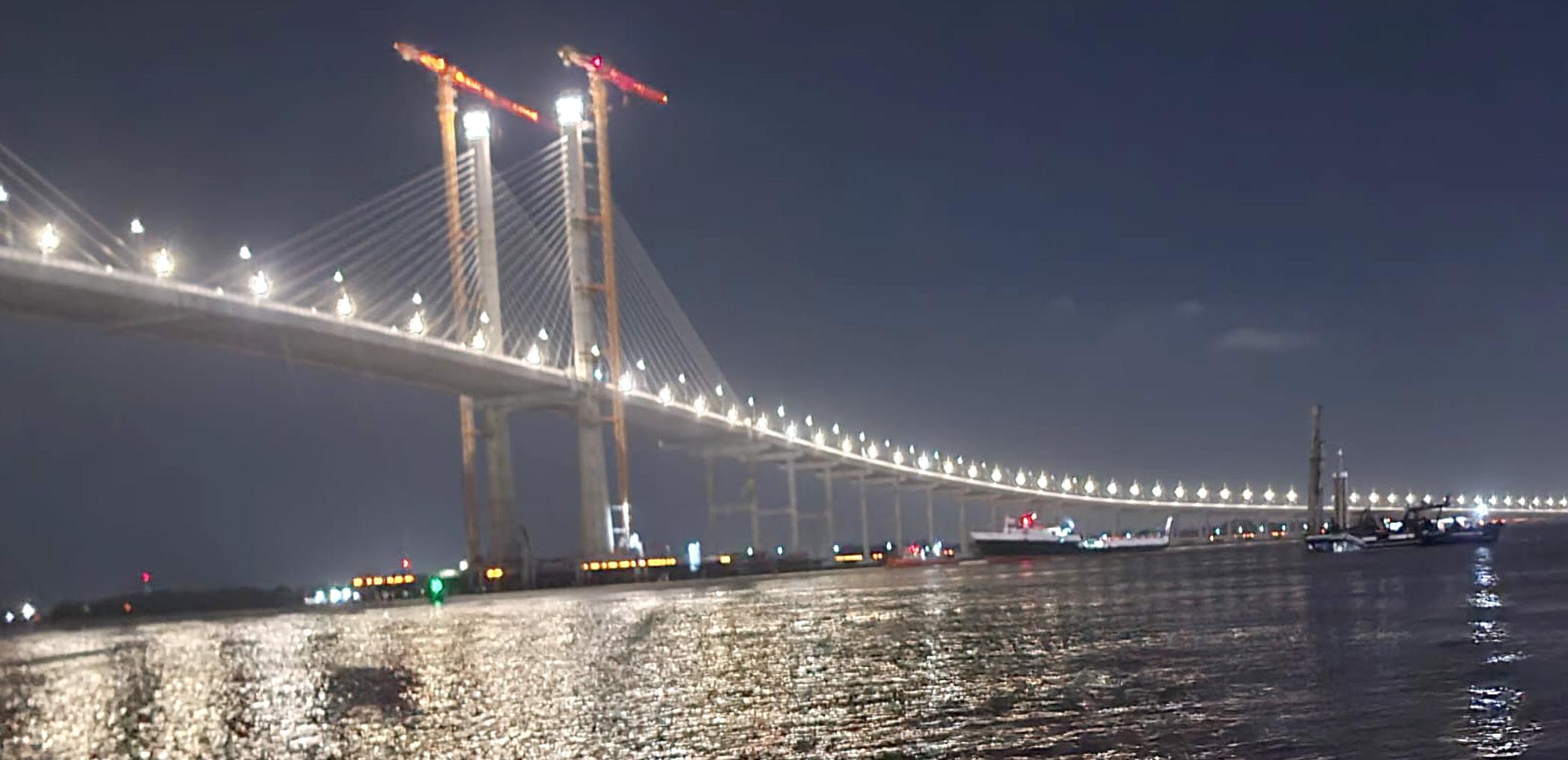 Then, without warning, the night split open in a burst of light. Fireworks exploded high above the newly opened Bharrat Jagdeo Demerara River Bridge, painting the sky in shimmering golds, reds, and greens. The river