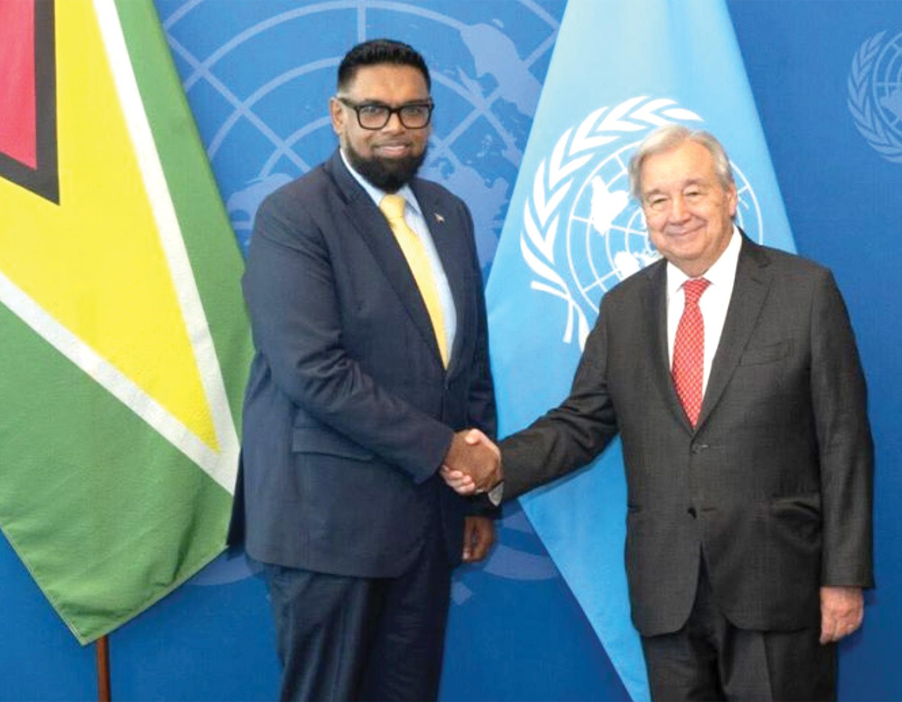 President Ali updated the Secretary General on the situation with Venezuela, in particular, the International Court of Justice (ICJ) case on the border controversy which is expected to be heard in a few months.