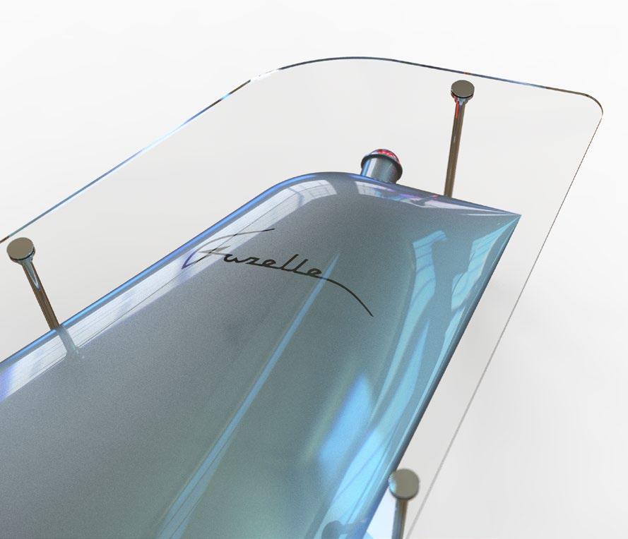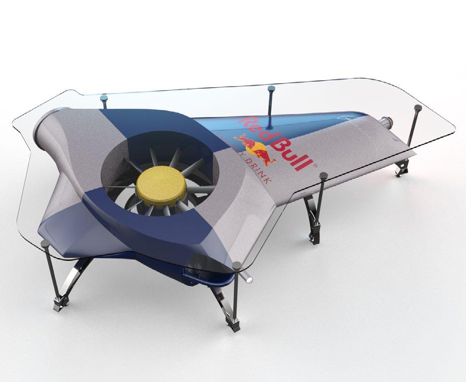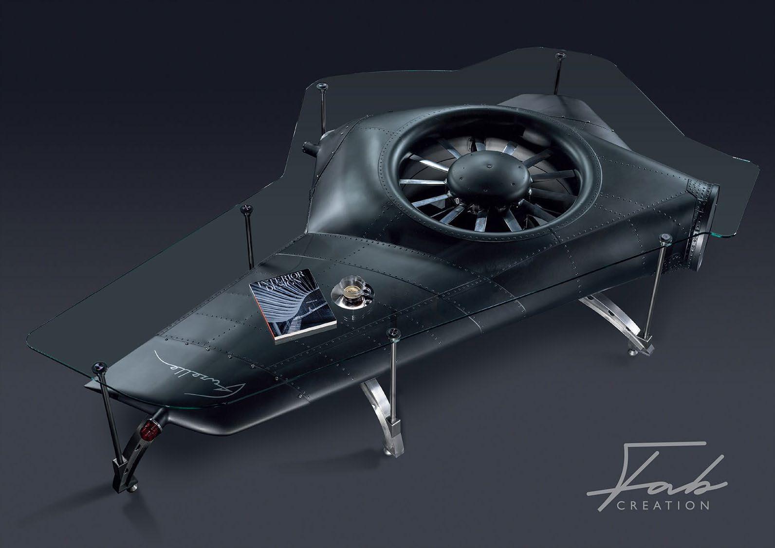 Helicopter tables and hanging sculpture visualisations for Fab Creation. The sculptures are made using salvaged Gazelle helicopter parts.