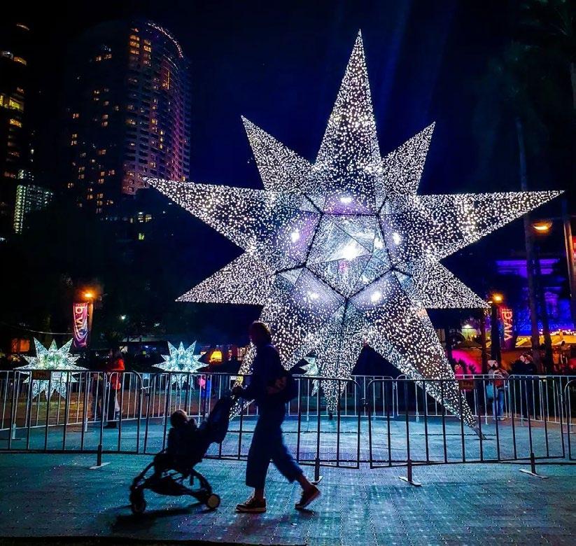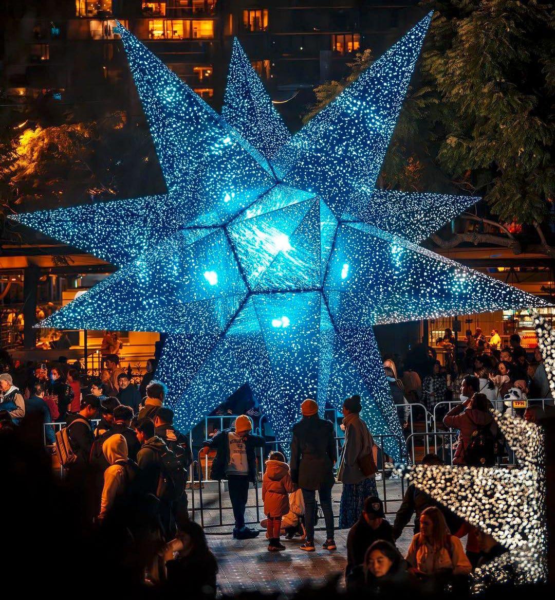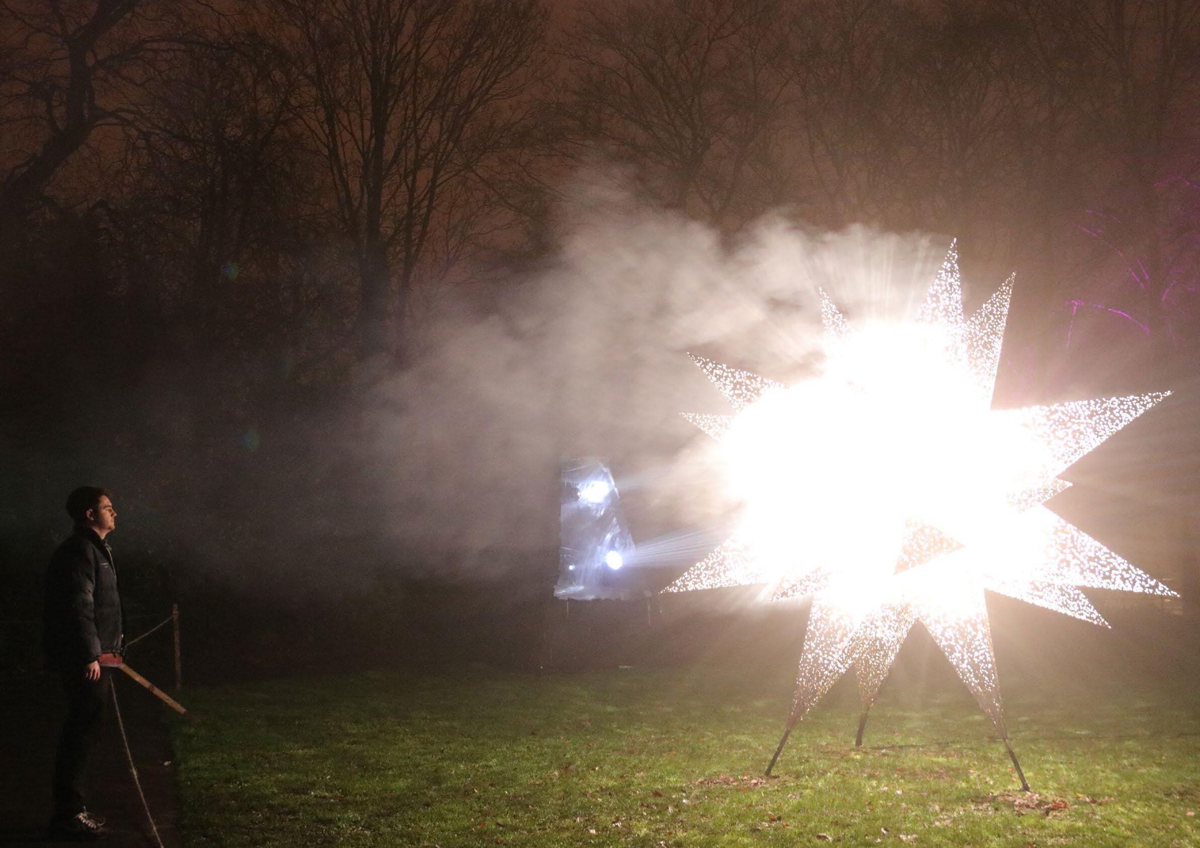 Following the success of Nova we created a huge 7 meter Supernova. This all new design now used pentagonal pyramids. It and 5 other Novas were sent to Sydney light festival where they formed an impressive constellation next to the Sydney Opera House. The pyramids and frame flat packed efficiently for transport.