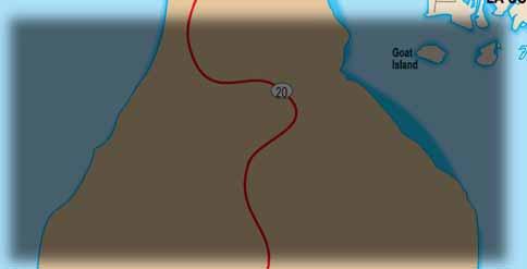 side of Highway 20 and includes 670 acres of ancient forest. 5,400 foot Sauk Mountain towers above Rockport and is accessible via a seven mile gravel road on the west side of town.