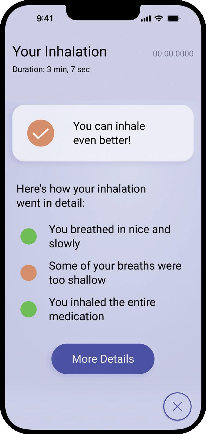 input. Patients can reliably track their inhaler use by pressing the button on the cap to inhale and then tapping the inhaler to a smartphone, which records the exact time of the dosage. Results are made available in a companion app on the NFC smartphone, so the patient knows how many puffs have been taken and when, as well as when the inhaler is running low.