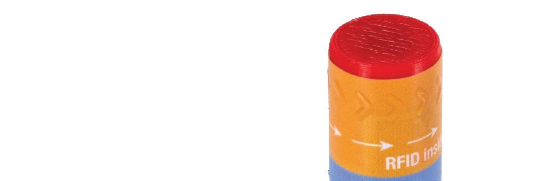 Schreiner MediPharm has developed a RAIN RFID label solution for syringes that addresses these issues (Figure 1). Used with a cap adapter, which equalises the diameter differences of the syringe body and cap, the label wraps around the syringe body and the cap adapter. When the syringe is opened, the label’s integrated perforation provides irreversible visual evidence of the event. At the same time, NXP’s labelintegrated UCODE tag also records digital evidence of the event upon tag readout, so it is easier to automate inventory control and track syringes based on opening status. The syringe label uses a flexible, yet highly robust, construction suitable for high-speed application, making it suitable for use as part of the normal primary container label process within pharmaceutical production – eliminating the need for application by hand at the point of use. Each label is equipped with a special structure that absorbs mechanical stress and impacts, thereby protecting the integrated inlay from damage and functional failure, so the label can be read reliably from production to final use.
