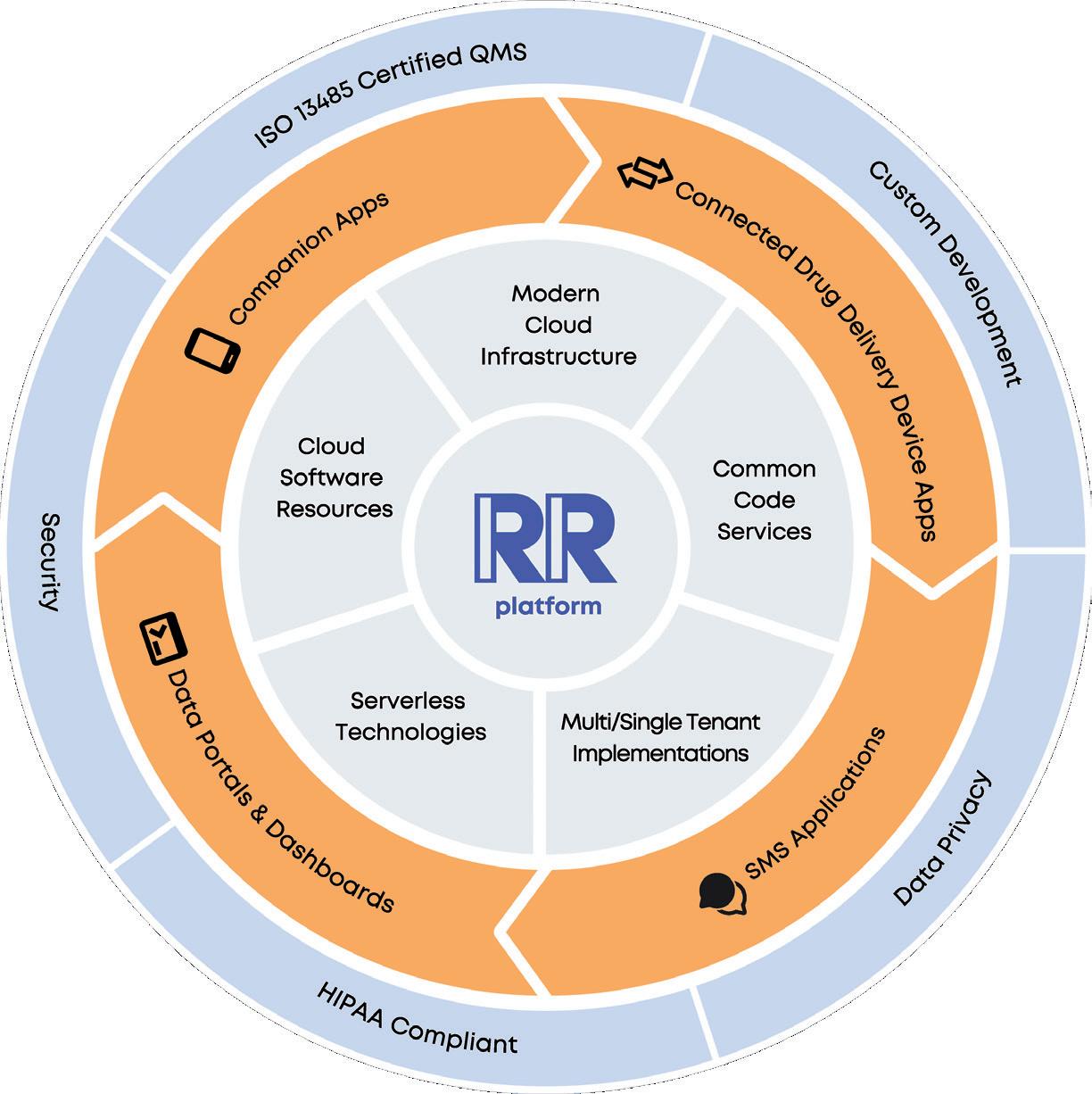one provider, pharmaceutical companies can waste a significant amount of time, resources and money, and are faced with huge co-ordination efforts to develop and maintain such an ecosystem. Moreover, these multi-provider setups increase the risks for lifecycle management, which can include maintenance issues and unclear roles for end-to-end solution verification, validation and operations. Ypsomed delivers fully integrated end-to-end digital health solutions (Figure 1), including connected devices, patient apps and data analytics, allowing pharmaceutical companies to focus on their core business. Ypsomed Digital Health’s solutions are based on a diseaseagnostic platform that is scalable and can be customised to brands, diseases and patients’ specific needs while ensuring efficient lifecycle management and maintenance.