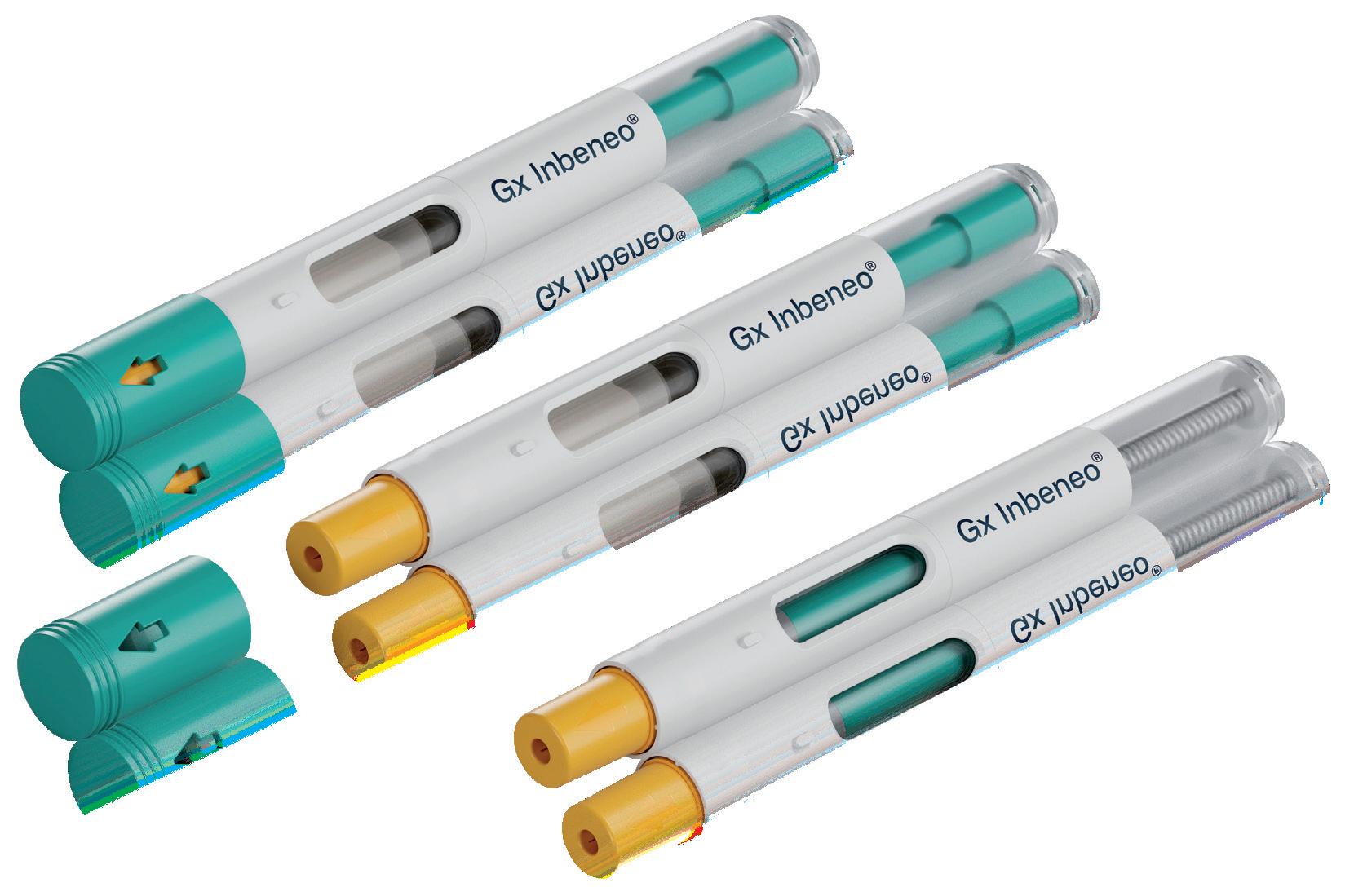 The Gx Inbeneo® autoinjector is a cartridgebased autoinjector system based on pressurised cartridges (Figure 1). During storage, there is no contact between the needle and the medication, ensuring that the needle remains dry. The disposable autoinjector is also compatible with cartridges that have a baked-on silicone coating.