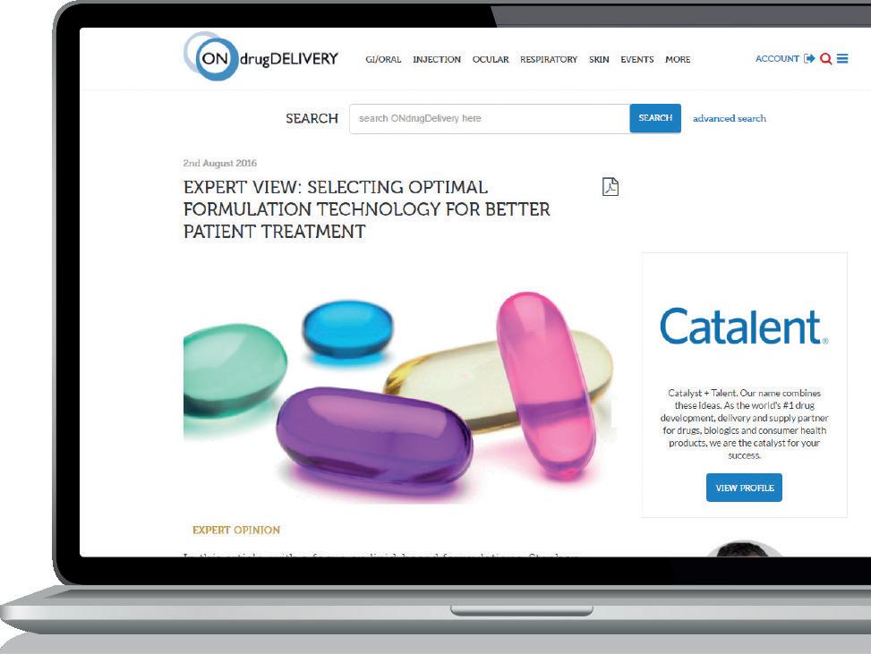 This edition is one in the ONdrugDelivery series of publications. Each issue focuses on a specific topic within the field of drug delivery, and is supported by industry leaders in that field.