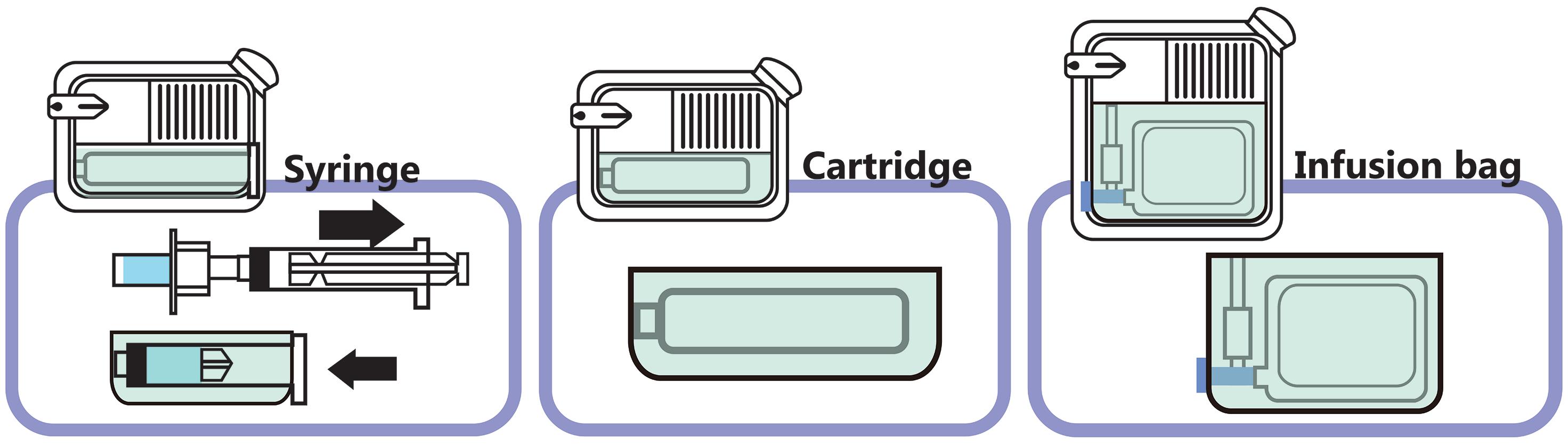 Cartridges are commonly seen in selfinjection devices such as autoinjectors or pen injectors. On the other hand, while glass vials are the most commonly used containers for packaging pharmaceuticals, they are rarely integrated into self-injection devices. For the self-administration of large-volume drugs, Alby is designed to accommodate both container types.