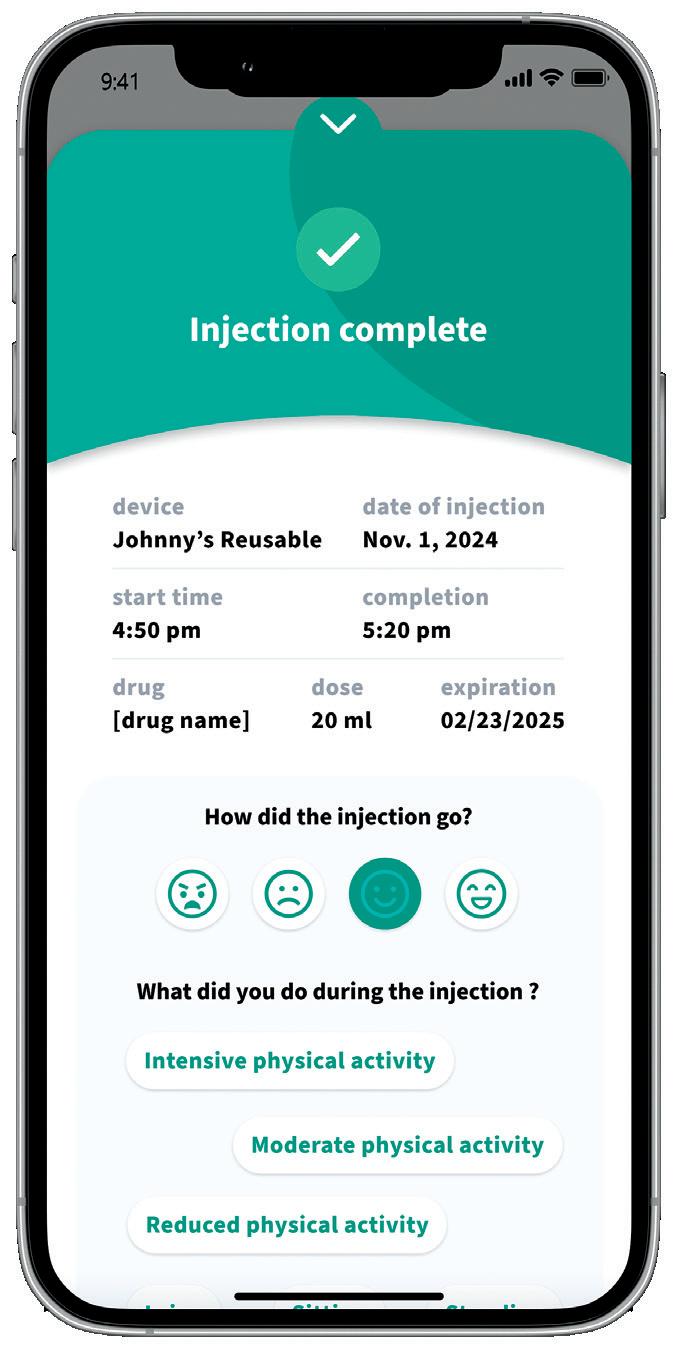 technology, Alby is a versatile delivery system that can perform SC injection in a controlled manner, provide detailed information about dosing status and enable key safety features that prevent device misuse. One example of this versatility is the electromechanical drive system, which can generate a specific dosing profile based on a combination of pre-programmed delivery rates and dosing intervals. The data generated from the use of the injectors can also be stored and shared anonymously with users and healthcare professionals (HCPs) for enhanced safety and disease management.