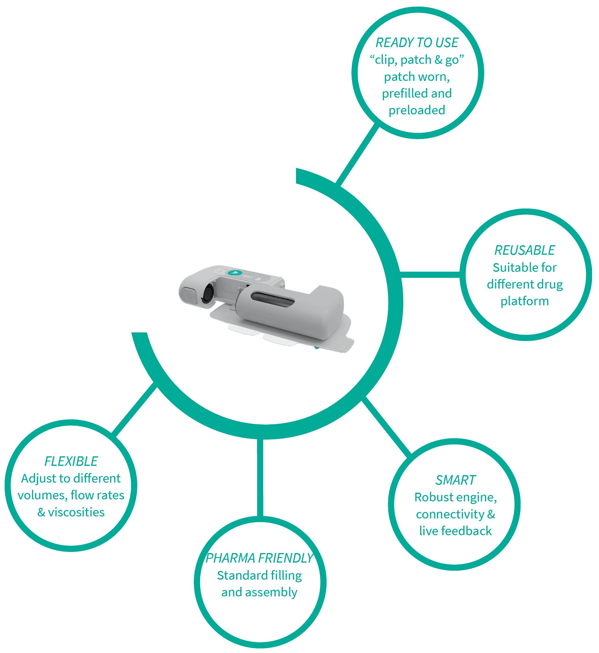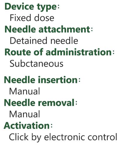 and the availability of fill-finish lines are some of the top considerations. And for device companies, quality, cost, regulatory compliance and manufacturability are some of the key considerations, to name a few. By considering the needs of various stakeholders, a smart wearable injection platform may provide a solution to largevolume on-body delivery.