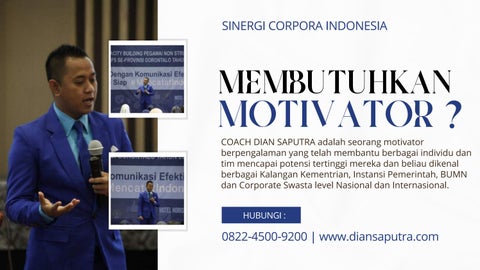 Kami adalah Admin dari Sinergi Corpora Indonesia yang menyediakan jasa motivator dan trainer dengan berbagai materi yang sedang dibutuhkan oleh perusahaan anda Hotline 081245009200 Website www.sinergicorporaindonesia.com