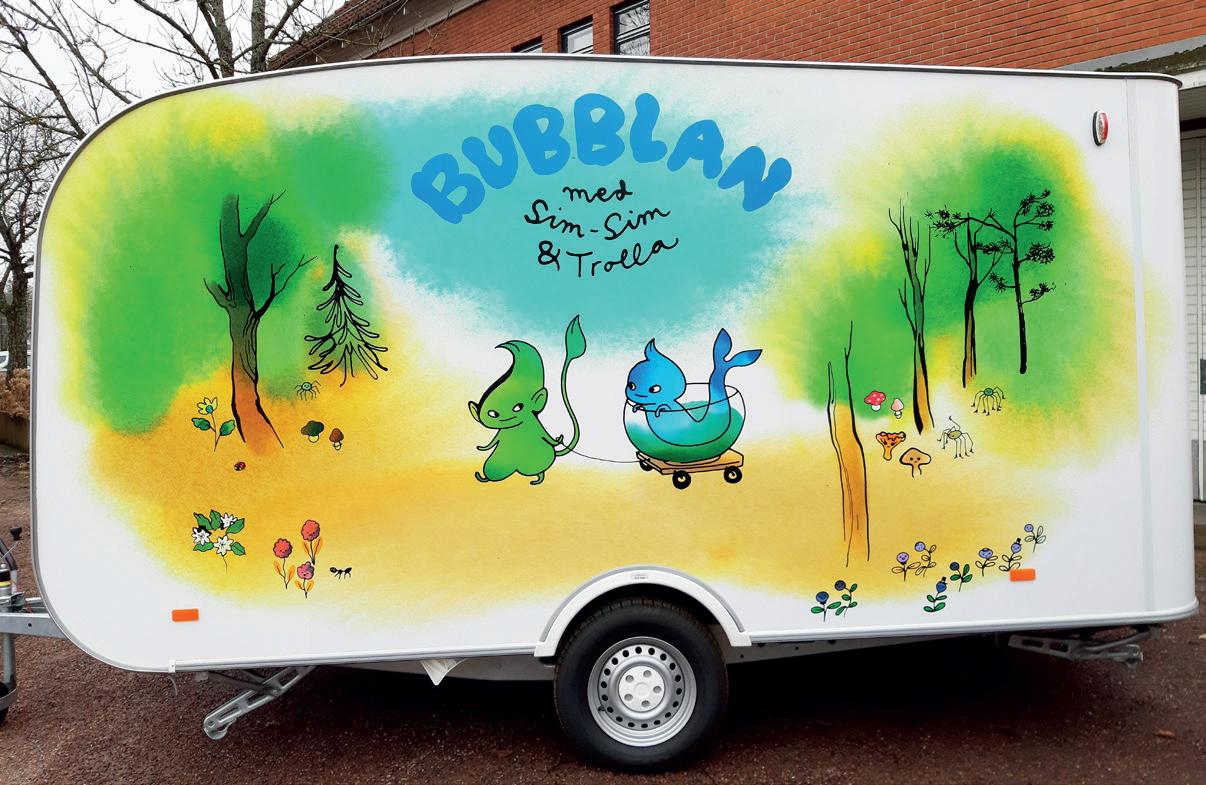 Grums biblioteks och kultur & fritids nya husvagn pryds av figurerna Sim-Sim och Trolla som är skapade av illustratören och barnboksförfattaren Stina Wirsén.