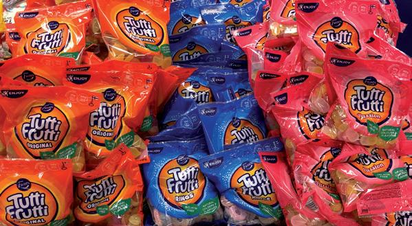 Fazer. 120-180 g. Tutti frutti, Tyrkisk peber, Skolkridt.