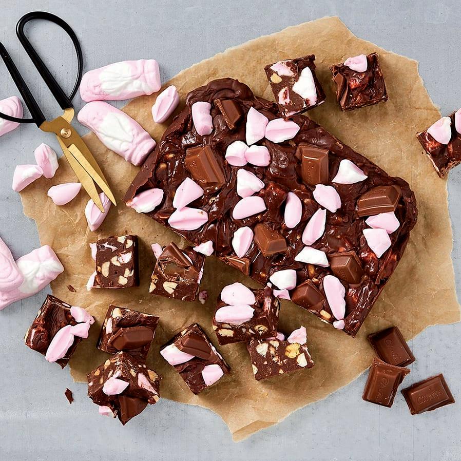 Skär eller klipp fudgen i rutor. Förvaras i kylskåp.