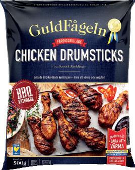 Ätklara kycklingdelar Guldfågeln. Ursprung Sverige. 350-500 g. Drumsticks, Wings, Nuggets, Kebab, Sticks, Hönsköttbul lar, Schnitzel. Frysta. Jfr jpris 50:00-71:43 kr/kg. Max 1 köp/ hushåll.