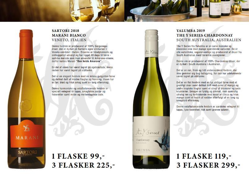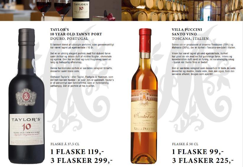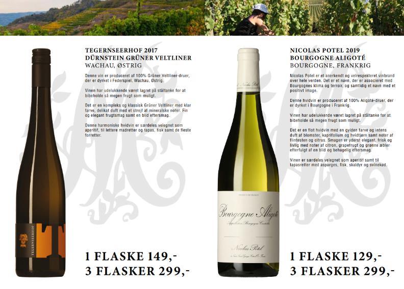 Se inspirationsvideo eller nogle menu forslag på www. mumsshop.dk, vi tilbyder endvidere flere vinmenuer til en kuvertpris fra kr. 99,- ved 4 personer.