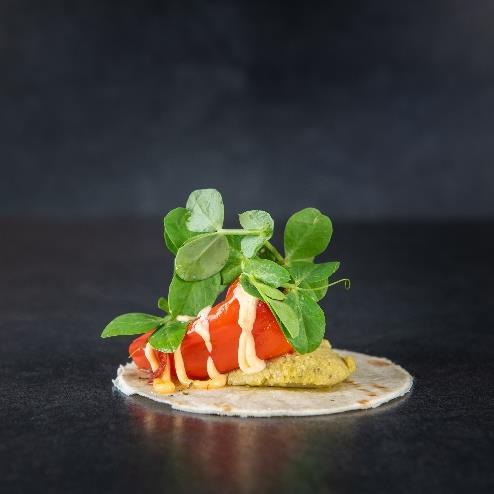 Nordisk flatbrød med bagt peberfrugt, kikærtemos og chili mayo