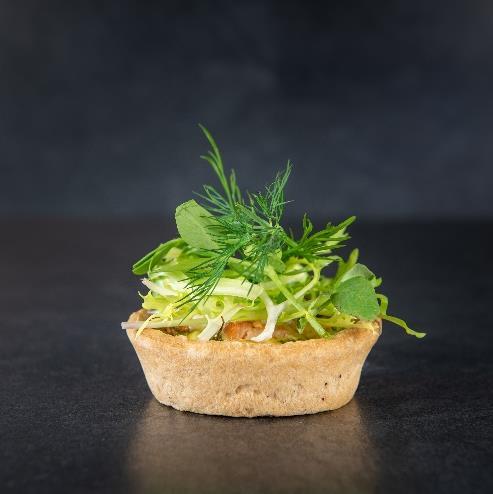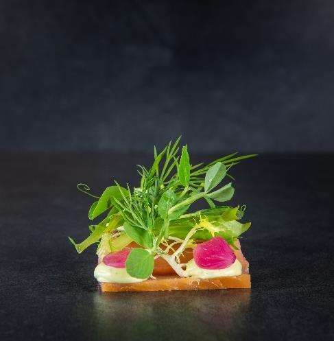 Røget okseinderlår med urtecreme og Havgus ost Laksetærte med aspargescreme