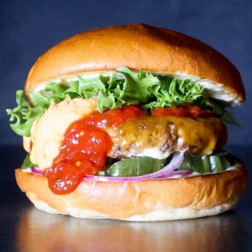 Denne kolde, grønne burger er en sand smagsoplevelse. Burgeren indeholder forskellige grøntsager, vegansk ost, sesam og krydderier. Bøffen serveres i en sesambolle med burgerdressing, ketchup, frisk salat og løg