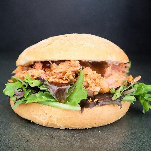 Hjemmelavet pulled beef af dansk oksekam krydret med MUMS egen rub. Dertil teriyaki sauce, salsa, chilimayo og chili drops, serveret på flatbrød
