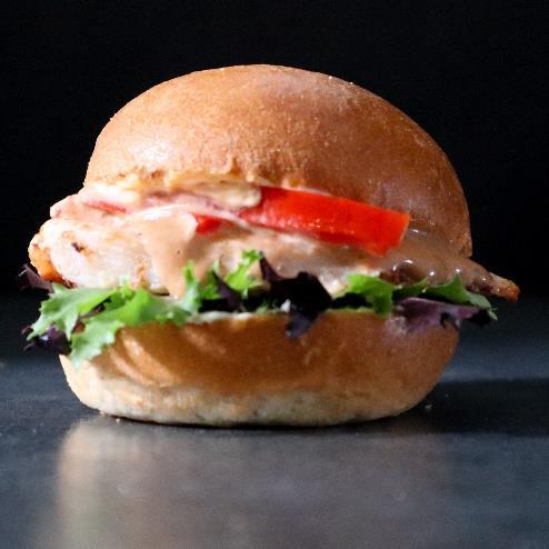 SLIDER med grillet kyllingeinderfilet, spicy mayo, syltet rød peber og street food dressing