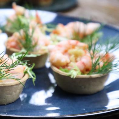 Håndpillede rejer fra Grønland på madpandekage, hjemmelavet dild