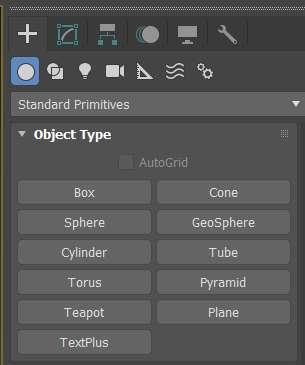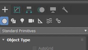 Crear panel: Contiene controles para crear objetos: geometría, cámaras, luces, etc.