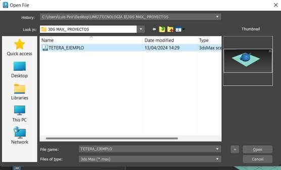 3.Busca y selecciona el archivo de escena (.max) que deseas abrir.