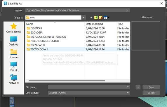 3.Si es la primera vez que guardas la escena, se te pedirá que elijas la ubicación y el nombre del archivo. Si ya has guardado previamente la escena, se sobrescribirá el archivo existente.