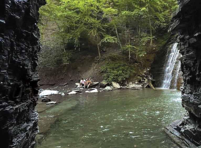 This adventurous 2-mile trail in the High Tor WMA offers creek-bed hiking, steep inclines, and five picturesque waterfalls. Be prepared to get wet and marvel at nature’s raw beauty.