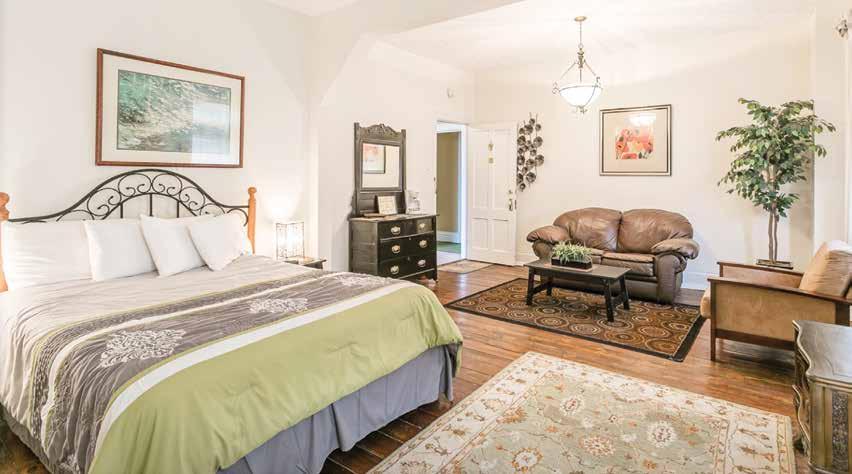 The modern Victorian aesthetic is comfortable and welcoming, featuring high-quality antique furniture, velvet fabric, damask wallpaper, and gold accents. Many rooms even have themes unique to the Naples area, which adds to the ambiance. Each suite has its own bedroom, bathroom, and living room with new carpet, new windows, and working electric fireplaces.
