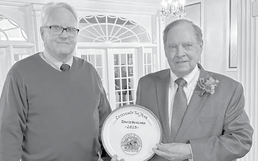 David Henehan accepts the Chamber’s Citizen of the Year plate from President Mike Carroll.