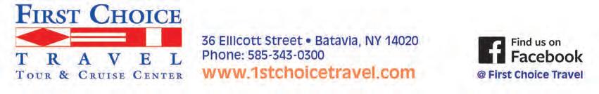 GENESEE VALLEY PENNY SAVER ● GVPENNYSAVER.COM 1-866-812-8111 Page3 BATAVIA EDITION ● FRIDAY,DECEMBER 9,2022 LIMITED TIME OFFER 60% off TAKE AN ADDITIONAL 10% off YOUR INSTALLATION Install for Military, Health Workers and First Responders + Warranty- Limited Lifetime. Transferable to 1 subsequent owner from original purchaser. Terms and conditions apply. Hail up to 2.5”, Appearance of the surface coating beyond normal wear and tear. Limited time offer. Expires 12.31.22 STRONG AS STEEL WITH THE ATTRACTIVE LOOK OF VARIOUS ROOF STYLES Upgrade Your Home witha NEW METAL ROOF Guaranteed to Last a Lifetime! From Dimensional Shingles to classic styles reminiscent of Cedar Shake and Spanish Tile, an architectural roo ng system by Erie Metal Roofs can enhance the beauty of your home while protecting your family and property for a lifetime. Made in the USA Call today to schedule your FREE ESTIMATE 1-877-350-3053 New orders only. Does not include material costs. Cannot be combined with any other offer. Minimum purchase required. Other restrictions may apply. This is an advertisement placed on behalf of Erie Construction Mid-West, Inc (“Erie”). Offer terms and conditions may apply and the offer may not be available in your area. Offer expires December 31, 2022. If you call the number provided, you consent to being contacted by telephone, SMS text message, email, pre-recorded messages by Erie or its affiliates and service providers using automated technologies notwithstanding if you are on a DO NOT CALL list or register. Please review our Privacy Policy and Terms of Use on homeservicescompliance.com. All rights reserved. Champion Moving Local & Long Distance Services 100 Owens Rd., Brockport 585-235-3500 www.champion-moving.com NYS DOT#-11083 585.409.8246 - OR585.536.9062 www.artisticinteriorswny.com INTERIOR PAINTING “Look at your walls... Then give us a call!” • Basic Painting • Cabinet Painting/Refinishing • YES We Remove “Popcorn” Ceilings STRANGE BUT TRUE By Lucie Winborne * Abraham Lincoln was a skilled wrestler and was honored with an award from the National Wrestling Hall of Fame in 1992. 400 S. Jackson St. | BATAVIA | 585.343.6280 | www.maxpiesfurniture.com Mon.-Fri. 9am-5pm (appts. avail. 5-7pm); Sat. 10am-4pm; Sun CLOSED *Minimum purchase required. Subject to credit approval. Ask about No Interest for 48 Months*!! “Furniture Boy” “Furniture Claus” Doesn’t Matter if You’ve Been Naughty or Nice... You’ ll Get the BEST Deal at Max Pies! • Homestretch • Best • Ashley • Flexsteel • Carolina • England • Vaughan/Bassett • Craftmaster • Jackson • Mohawk, Shaw & Aladdin Carpeting • Restonic, Therapedic, Corsicana Mattresses Gift Certificates Available Sofas from $599 Loveseats from $499 Chairs from $479 Recliners from $499 Rocker Recliners from $599 Glide Rockers from $699 Springs or Mattress twin size from $199 ea. full size from $279 ea. Queen size sets from $699 King size sets from $899 4 Drawer Chests from $399 Bedroom Sets from $999 Hide-A-Beds from $999 Wood Kitchen Sets from $799 Hutches from $999 Swivel Rockers from $699 Luxury Vinyl from $4.99 sq. ft. Carpeting from $1.99 sq. ft. End Tables from $249 WHERE OUR CUSTOMERS SEND THEIR FRIENDS EST. 1095 • Family Oriented • Bedding • Carpeting • FURNITURE Roll Top Desks from $999 Desks 30% OFF Motion sofas from $999 Leather sofas from $1,099 Lamps 30% OFF LeRoy Office: 21 Main St, LeRoy, NY 14482 Buffalo Office: 2562 Walden Ave, Suite 105, Buffalo, NY 14225